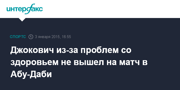 Москва. 3 января. INTERFAX.RU - Лидер рейтинга Ассоциации теннисистов профессионалов (ATP) Новак Джокович не вышел на финальный матч выставочного турнира в Абу-Даби, в котором должен был встретиться с британцем Энди Марреем, сообщил официальный твиттер соревнований.