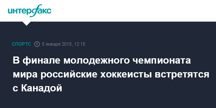 Москва. 5 января. INTERFAX.RU - Сборная Канады стала соперником России по финалу чемпионата мира по хоккею не старше 20 лет.