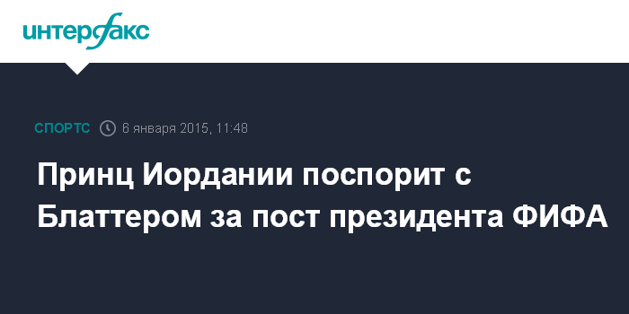 Москва. 6 января. INTERFAX.RU - Вице-президент ФИФА, принц Иордании Али бин аль-Хусейн принял решение выдвинуть свою кандидатуру на пост президента организации.