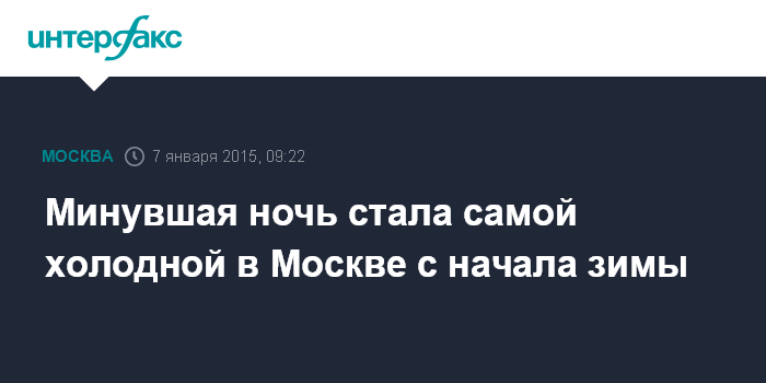 Москва. 7 января. INTERFAX.RU - Температура воздуха в ночь на среду в Москве опускалась до минус 21 градуса, в Подмосковье - до минус 28 градусов, что является самым низким показателем с начала нынешней зимы, сообщили "Интерфаксу" в Гидрометеобюро Москвы и Московской области.