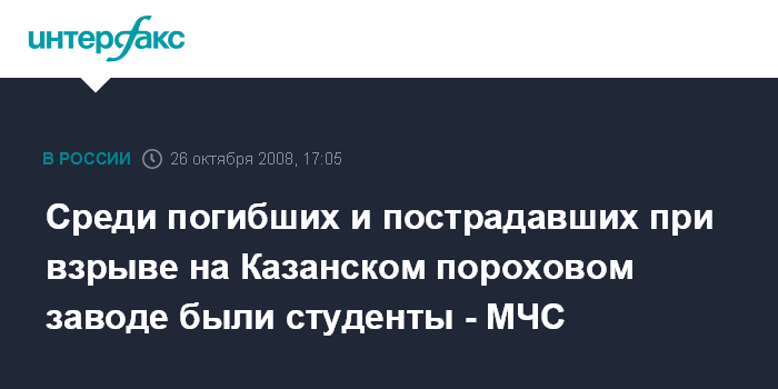 Среди погибших и пострадавших при взрыве на Казанском пороховом заводе были студенты - МЧС