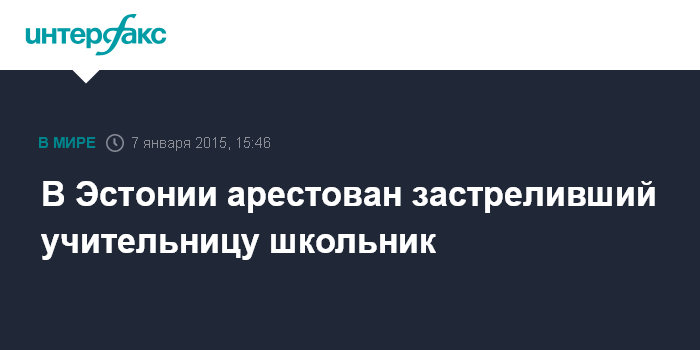 Москва. 7 января. INTERFAX.RU - Эстонский школьник, который застрелил учительницу немецкого языка, помещен под арест.