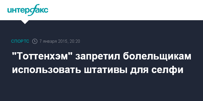 Москва. 7 января. INTERFAX.RU - Руководство футбольного клуба "Тоттенхэм" запретило фанатам использовать штативы для селфи на домашнем стадионе, сообщает Metro.