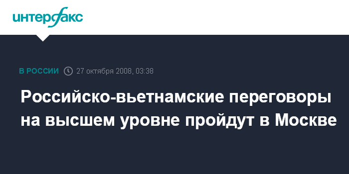 Москва. 27 октября. ИНТЕРФАКС - Российско-вьетнамские переговоры на высшем уровне состоятся 27 октября в рамках официального визита в Россию президента Вьетнама Нгуен Минь Чиета.