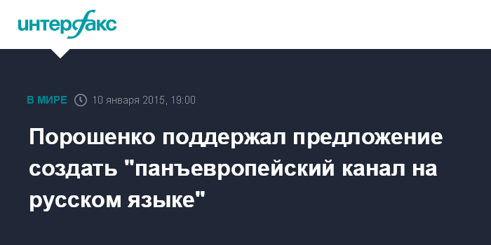 Москва. 10 января. INTERFAX.RU - Президент Украины Петр Порошенко надеется, что на Рижском саммите "Восточного партнерства" в мае текущего года будет принято решение о создании панъевропейского русскоязычного канала как источника объективной информации.
