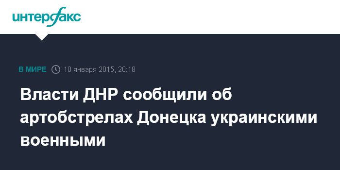 Москва. 10 января. INTERFAX.RU - Представители самопровозглашенной Донецкой народной республики сообщили об обстрелах окраин Донецка и ряда других населенных пунктов вооруженными силами Украины.