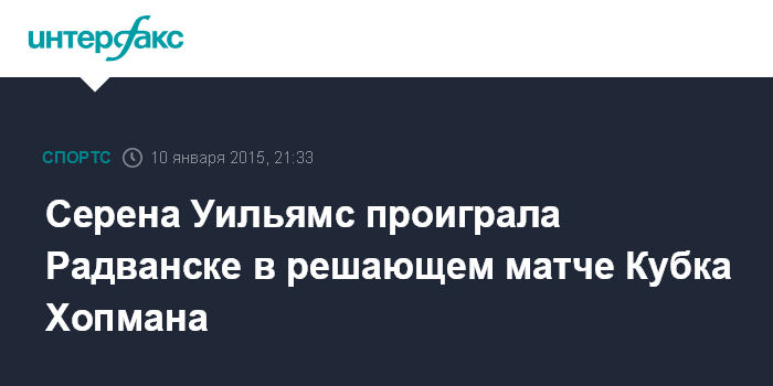 Москва. 10 января. INTERFAX.RU - Польская теннисистка Агнешка Радванска обыграла американку Серену Уильямс в решающем матче проходившего в австралийском Перте Кубка Хопмана.