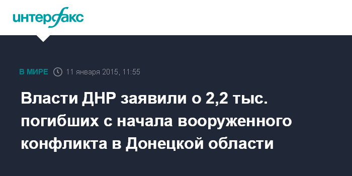 Власти ДНР заявили о 2,2 тыс. погибших с начала вооруженного конфликта в Донецкой области