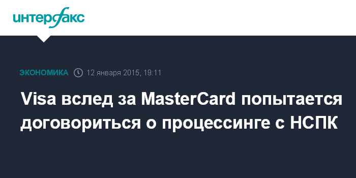 Москва. 12 января. INTERFAX.RU - Договор между Национальной системой платежных карт (НСПК) и международной платежной системой Visa о переводе процессинга по картам Visa в России в НСПК находится в стадии обсуждения, сообщили агентству "Интерфакс" в пресс-службе Банка России.