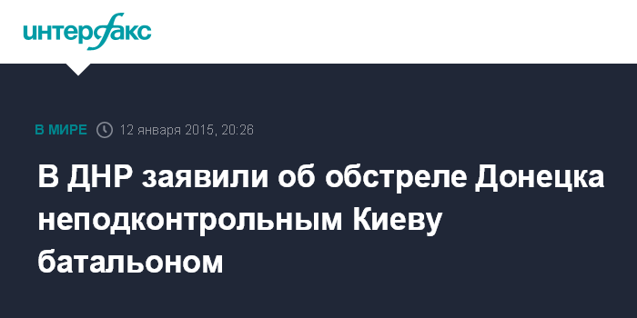 Москва. 12 января. INTERFAX.RU - Полномочный представитель ДНР в контактной группе по разрешению ситуации на востоке Украины Денис Пушилин заявил, что Донецк обстреливает неподконтрольный Киеву украинский спецбатальон "Сич".