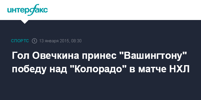 Москва. 13 января. INTERFAX.RU - В матче очередного тура регулярного чемпионата НХЛ "Вашингтон" на своем льду нанес поражение "Колорадо".