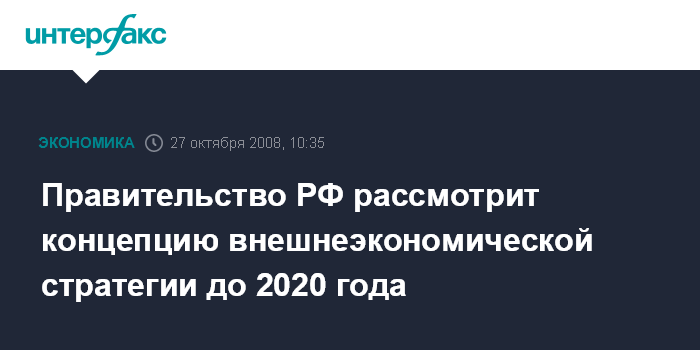 Правительство РФ рассмотрит концепцию внешнеэкономической стратегии до 2020 года