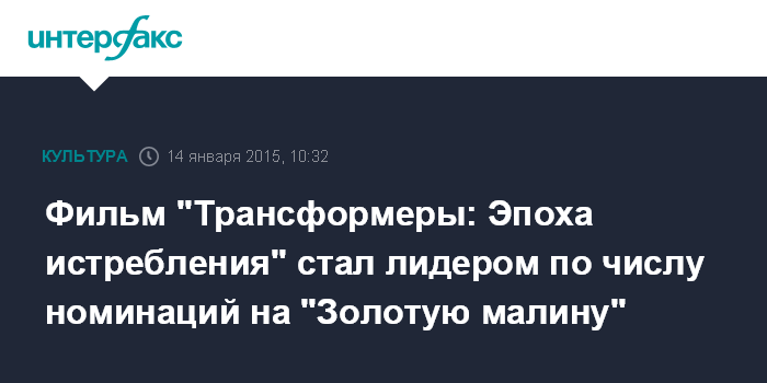 Фильм "Трансформеры: Эпоха истребления" стал лидером по числу номинаций на "Золотую малину"