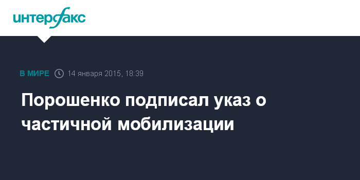 Москва. 14 января. INTERFAX.RU - Президент Украины Петр Порошенко заявил, что подписал указ о проведении трех волн мобилизации в 2015 году, а также передаст его в Верховную Раду Украины.