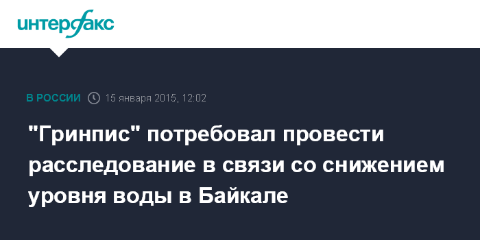 Москва. 15 января. INTERFAX.RU - Экологи призывают провести серьезное научное исследование в связи со снижением уровня воды в озере Байкал.