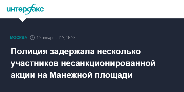 Москва. 15 января. INTERFAX.RU - Несколько участников несанкционированной акции были задержаны в четверг вечером на Манежной площади.