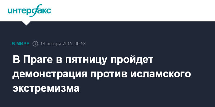 Москва. 16 января. INTERFAX.RU - Тысячи жителей Праги собираются участвовать в пятницу в демонстрации против исламистского экстремизма, сообщают чешские СМИ.