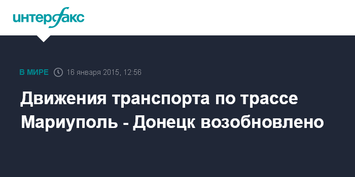 Москва. 16 января. INTERFAX.RU - Транспортное сообщение между Мариуполем и Донецком восстановлено, сообщила в пятницу пресс-служба Донецкой областной администрации.