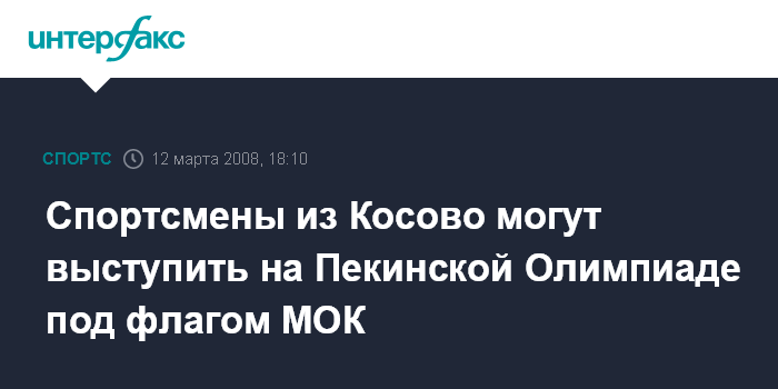 Москва. 12 марта. INTERFAX.RU - В Олимпийском комитете России (ОКР) скептически смотрят на возможность спортсменов из Косово уже на Олимпиаде в Пекине в этом году выступить под своим флагом.