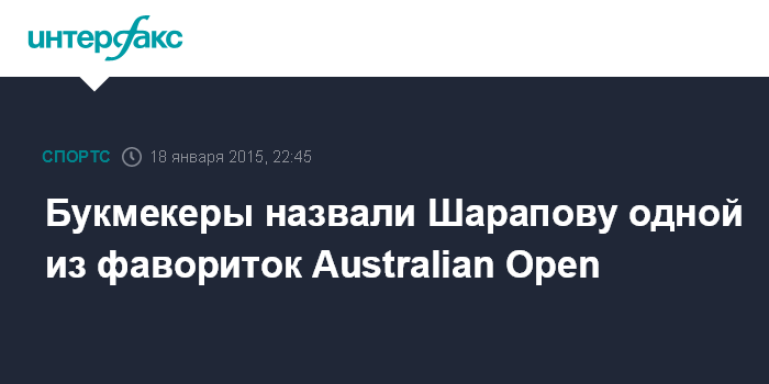 Москва. 18 января. INTERFAX.RU - Россиянка Мария Шарапова вошла в ведущую тройку претендентов на выигрыш Открытого чемпионата Австралии по теннису (Australian Open) в женском одиночном разряде, свидетельствуют котировки британской букмекерской конторы William Hill.