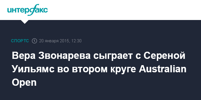 Москва. 20 января. INTERFAX.RU - Лидер рейтинга Женской теннисной ассоциации (WTA) американка Серена Уильямс стала соперницей россиянки Веры Звонаревой (203-я ракетка мира) во втором круге Открытого чемпионата Австралии.