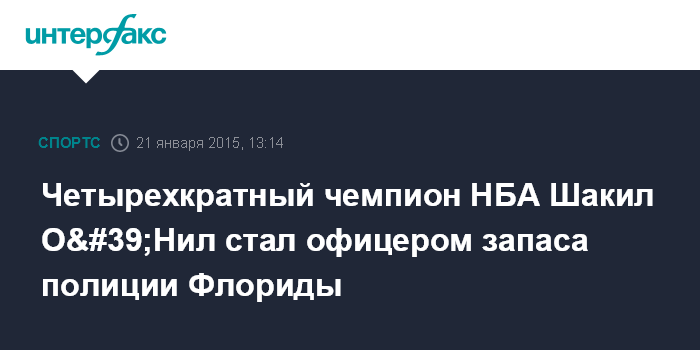 Москва. 21 января. INTERFAX.RU - Бывший игрок Национальной баскетбольной ассоциации (НБА) знаменитый Шакил О'Нил принял присягу и был включен в резерв полиции Южной Флориды, сообщает ESPN