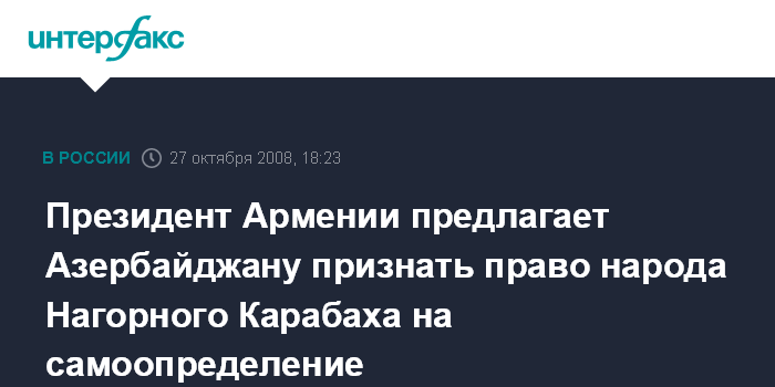 Президент Армении предлагает Азербайджану признать право народа Нагорного Карабаха на самоопределение