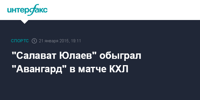 Москва. 21 января. INTERFAX.RU - В матче очередного тура регулярного чемпионата Континентальной хоккейной лиги (КХЛ) уфимский "Салават Юлаев" в Омске одержал победу над местным "Авангардом".