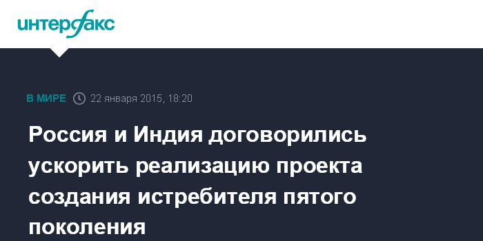 "Индия договорилась ускорить реализацию проекта создания истребителя пятого поколения совместно с Россией", - сообщает индийский новостной портал NDTV, комментируя итоги визита российского министра обороны Сергея Шойгу в Дели.