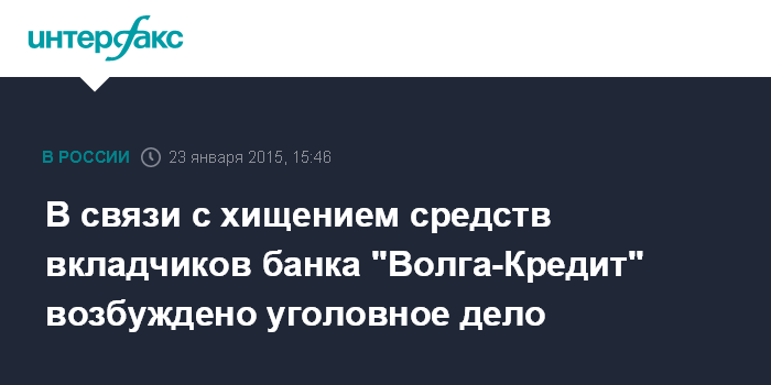 В связи с хищением средств вкладчиков банка "Волга-Кредит" возбуждено уголовное дело