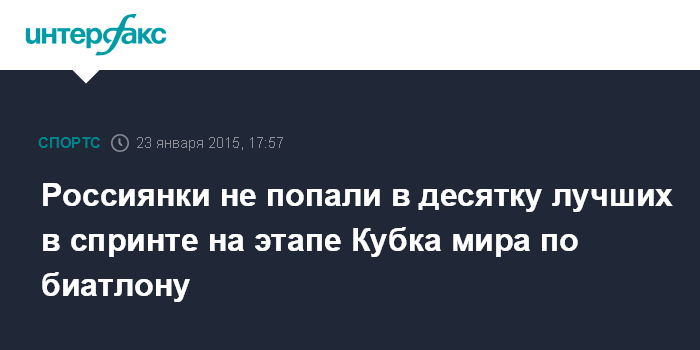 Москва. 23 января. INTERFAX.RU - Российские биатлонистки остались за чертой призеров по итогам спринтерской гонки, прошедшей в итальянской Антерсельве в рамках этапа Кубка мира.