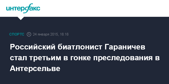 Москва. 24 января. INTERFAX.RU - Российский биатлонист Евгений Гараничев занял третье место в гонке преследования на этапе Кубка мира в итальянской Антерсельве.