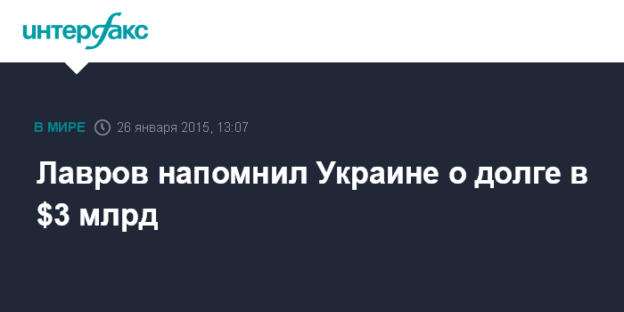 Москва. 26 января. INTERFAX.RU - Россия на данном этапе не требует от Украины выплаты долга в $3 млрд, хотя условия для таких выплат уже наступили, заявил глава МИД Сергей Лавров.