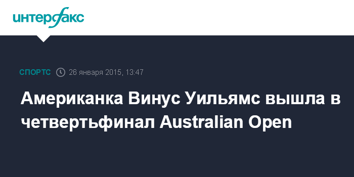 Москва. 26 января. INTERFAX.RU - Американская теннисистка Винус Уильямс завоевала путевку в 1/4 финала Открытого чемпионата Австралии.