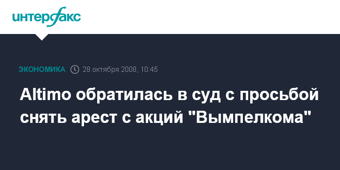 Altimo обратилась в суд с просьбой снять арест с акций "Вымпелкома"