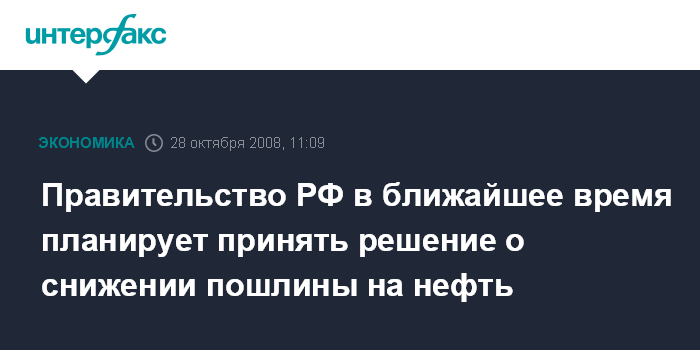 Правительство РФ в ближайшее время планирует принять решение о снижении пошлины на нефть