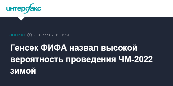 Москва. 28 января. INTERFAX.RU - Генеральный секретарь Международной федерации футбола (ФИФА) Жером Вальке выразил уверенность в том, чемпионат мира-2022 года в Катаре пройдет в зимний период.