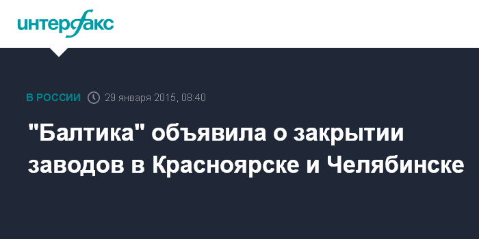 "Балтика" объявила о закрытии заводов в Красноярске и Челябинске