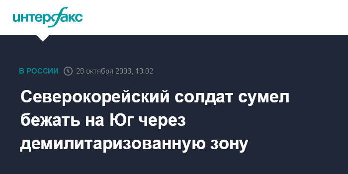 Сеул. 28 октября. INTERFAX.RU - Военнослужащий Корейской народной армии смог совершить побег в Южную Корею через демилитаризованную зону между двумя государствами, сообщил представитель южнокорейской разведслужбы.