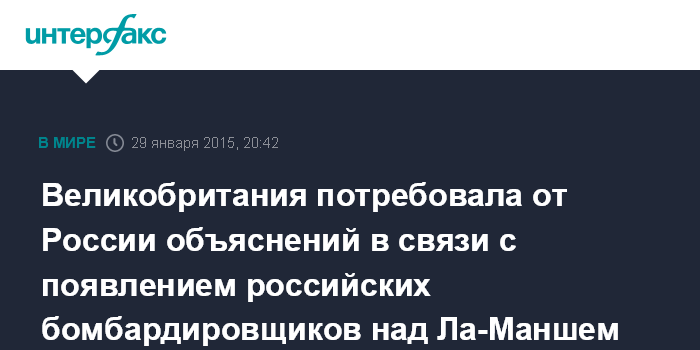 Газета Daily Telegraph ранее сообщила, что самолеты ВВС Великобритании в среду были подняты по тревоге для перехвата двух российских стратегических бомбардировщиков Ту-95. По данным издания, британские истребители в течение примерно получаса сопровождали российские бомбардировщики, пролетевшие над проливом Ла-Манш. Вместе с тем, Daily Telegraph отмечает, что оба Ту-95 не вторгались в воздушное пространство Великобритании.