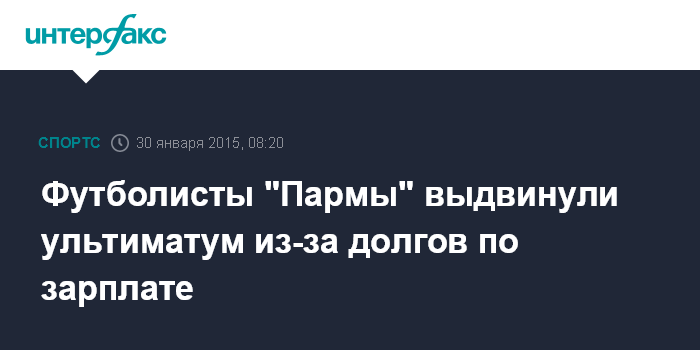 Москва. 30 января. INTERFAX.RU - Футболисты "Пармы" готовы пойти на крайние меры в случае, если долги по зарплатам не будут выплачены до 16 февраля - даты, озвученной самим руководством клуба.