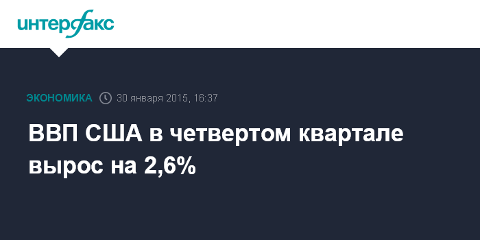 Москва. 30 января. INTERFAX.RU - Темпы роста ВВП США в четвертом квартале 2014 года замедлились до 2,6% в пересчете на годовые темпы по сравнению с 5% в предшествующие три месяца, свидетельствуют предварительные данные министерства торговли страны.