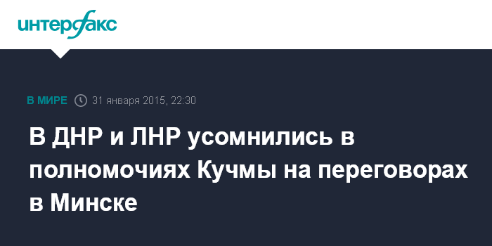 Очередная встреча контактной группы (РФ-Украина-ОБСЕ и представители ополченцев) по урегулированию конфликта на юго-востоке Украины состоялась в субботу 31 января. Представляющий украинскую сторону экс-президент Леонид Кучма назвал переговоры сорванными по вине ДНР и ЛНР.