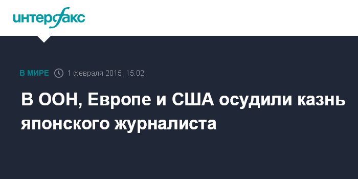 Расправу над японским журналистом также осудили в ООН. Генсек организации призвал "к безусловному освобождению всех заложников, удерживаемых ИГ и другими (группировками - ИФ)".