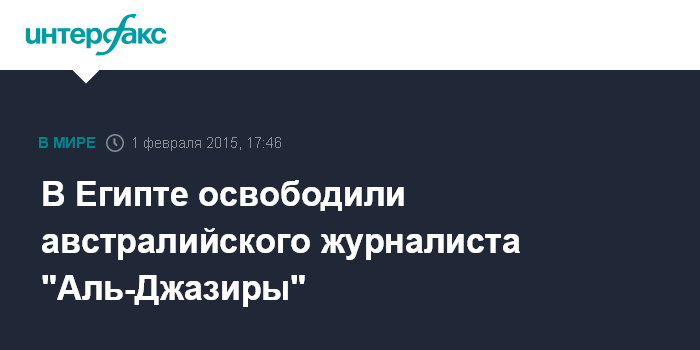 Москва. 1 февраля. INTERFAX.RU - Власти Египта приняли решение освободить находившегося в заключении австралийского журналиста телеканала "Аль-Джазира" Питера Гриста, передает в воскресенье агентство Associated Press.
