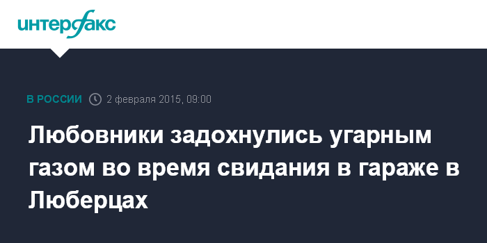 Москва. 2 февраля. INTERFAX.RU - Мужчина и женщина погибли, задохнувшись угарным газом во время свидания в автомобиле в подмосковных Люберцах, сообщил "Интерфаксу" источник в правоохранительных органах.