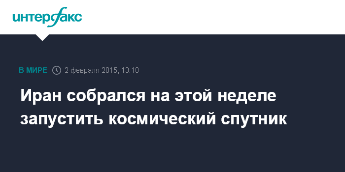 Москва. 2 февраля. INTERFAX.RU - Иран на этой неделе планирует запустить в космос спутник собственного производства, сообщил вице-президент республики по науке и технологиям Сорена Саттари.