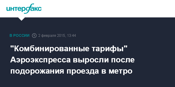 Москва. 2 февраля. INTERFAX.RU – "Комбинированные тарифы" "Аэроэкспресса" в столичном регионе с 1 февраля выросли в связи с повышением стоимости проезда в столичном метро.