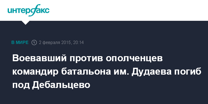Воевавший против ополченцев командир батальона им. Дудаева погиб под Дебальцево