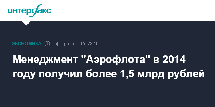 Менеджмент "Аэрофлота" в 2014 году получил более 1,5 млрд рублей